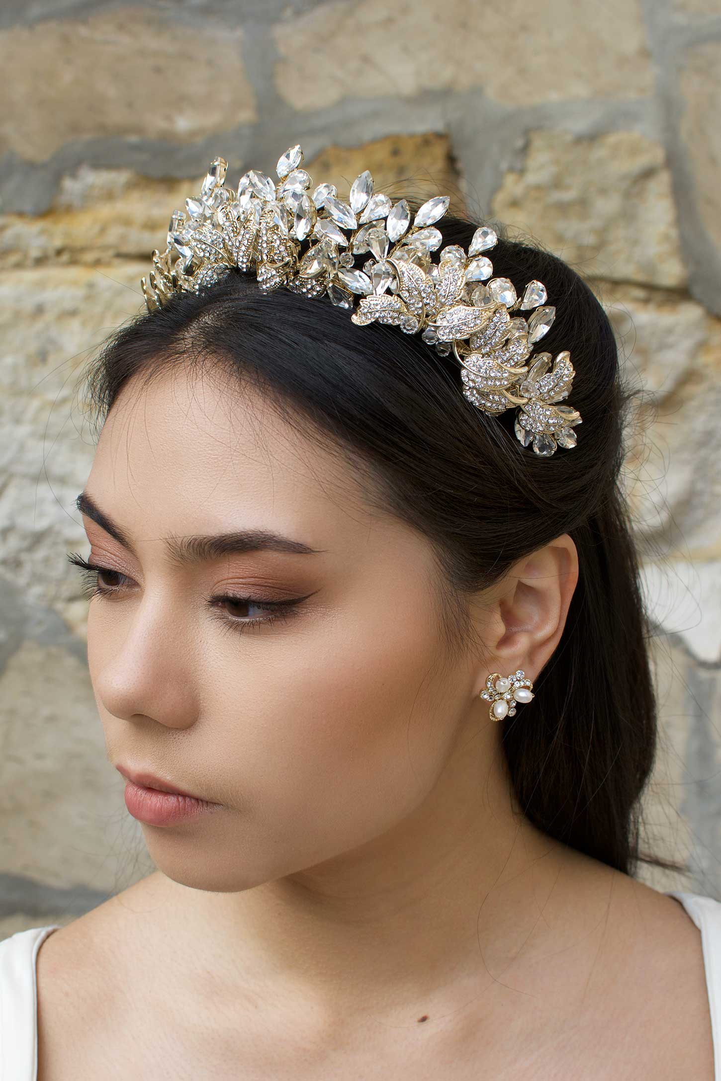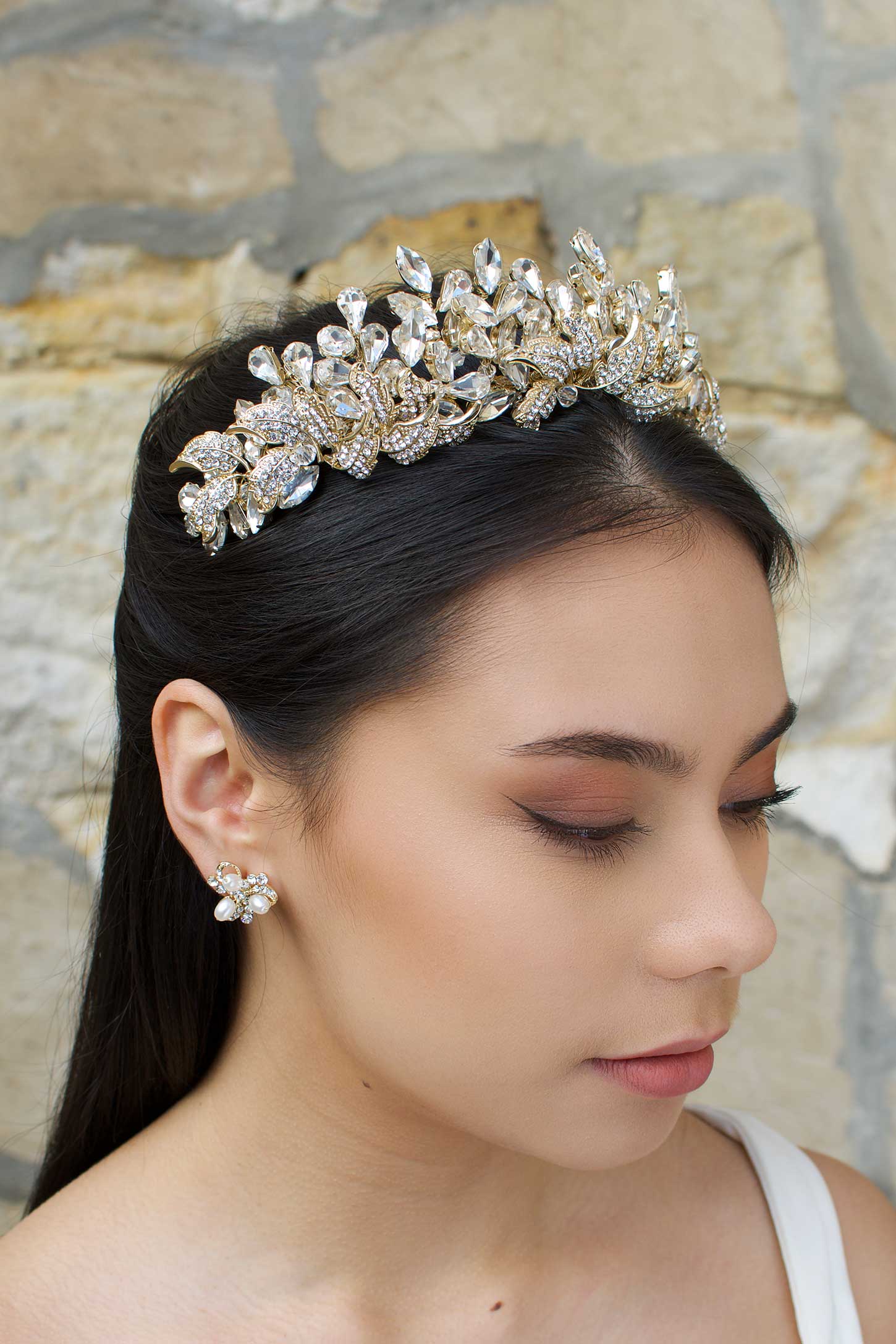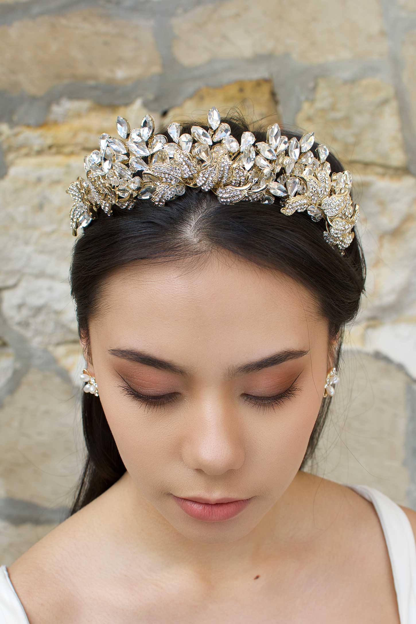 Amani glistens with branches of crystal clusters and gently flowing gold crystal encrusted leaves. Captivating and dazzling, Amani will win the hearts of all who lay eyes on this magnificent piece. Only available in gold.