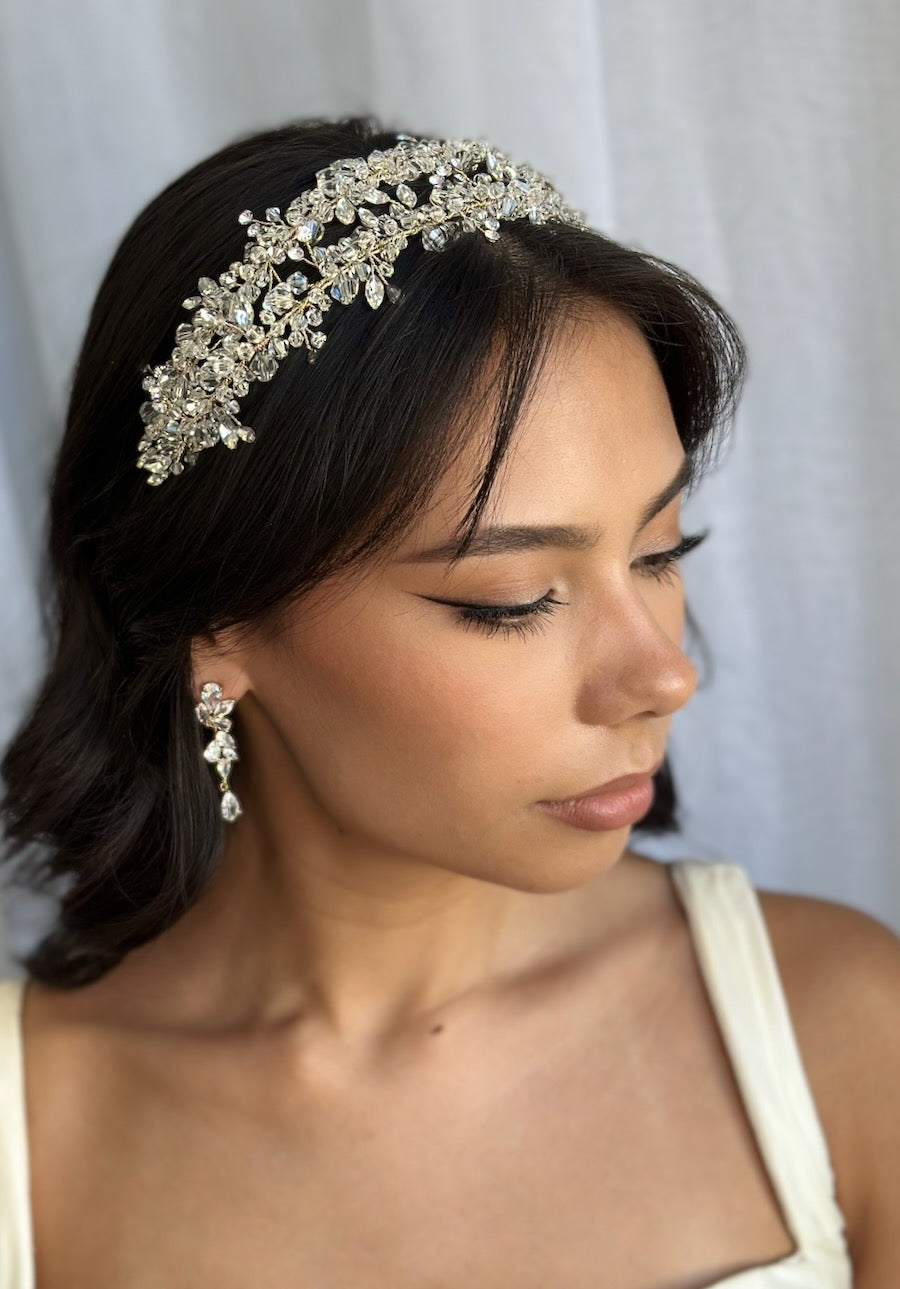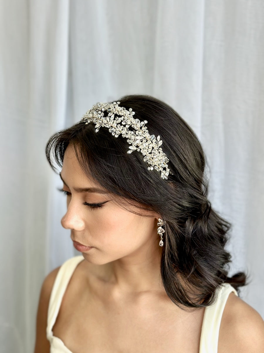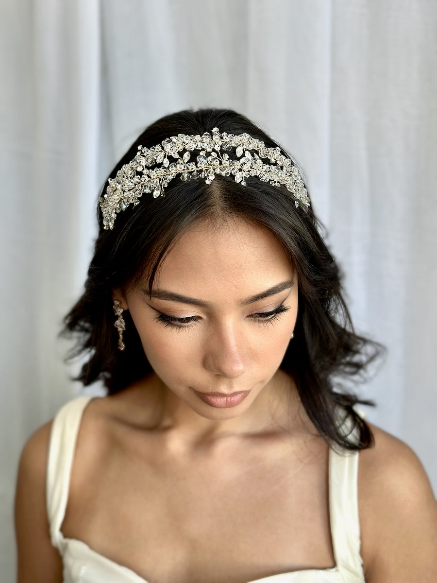 Our Cosima twin band design is a masterpiece of classical crystal charm. Ultra-lightweight and easily adjusted for style preference, Cosima allows you to spread the twin rows of gleaming crystal as wide or as narrow as you like. Simple yet beautiful, the Cosima headband is easy and comfortable to wear and is sure to perfectly compliment your bridal ensemble.