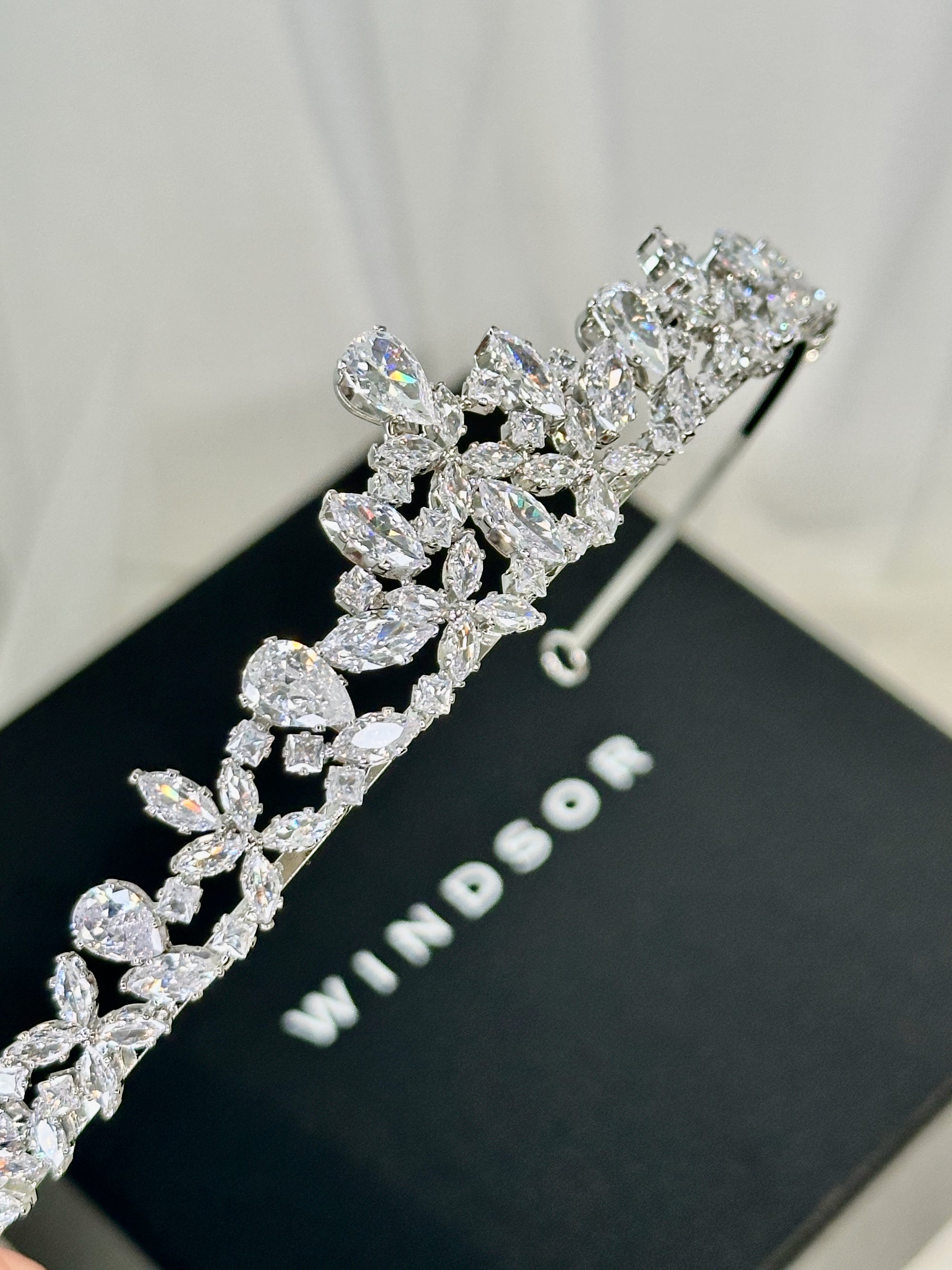 Emmaline is a refined bridal tiara designed for the contemporary bride seeking understated elegance on her wedding day. Crafted with open-backed crystals set in rhodium-plated silver, this piece combines timeless sophistication with modern sensibility. Its lightweight, flexible construction ensures all-day comfort, while premium materials throughout guarantee lasting beauty. Presented in elegant packaging, Emmaline makes a stunning addition to any bridal ensemble.