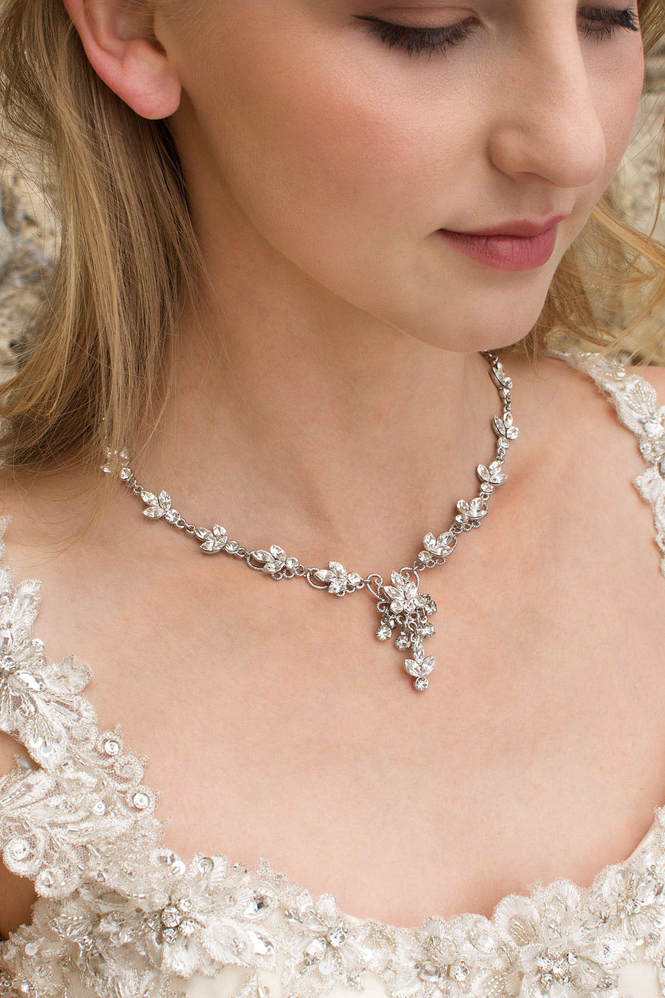 An extravagant art-deco drop earring, the Lavish earring perfectly reflects its' name. Tri-navette shaped Swarovski crystals pair with swirling wire sprigs in this elegant, long drop earring. Lavish is available in Rhodium and perfectly matches the Lavish Earring. The Lavish Necklace also matches Amelia, a smaller tri-navette shaped earring.