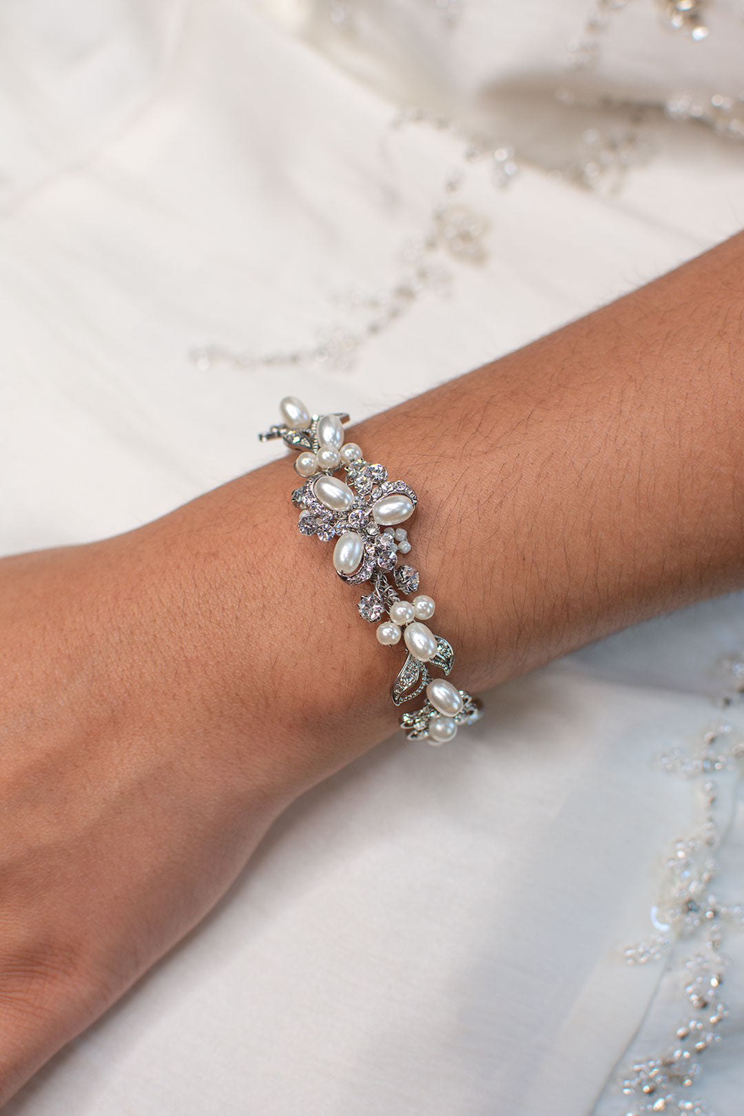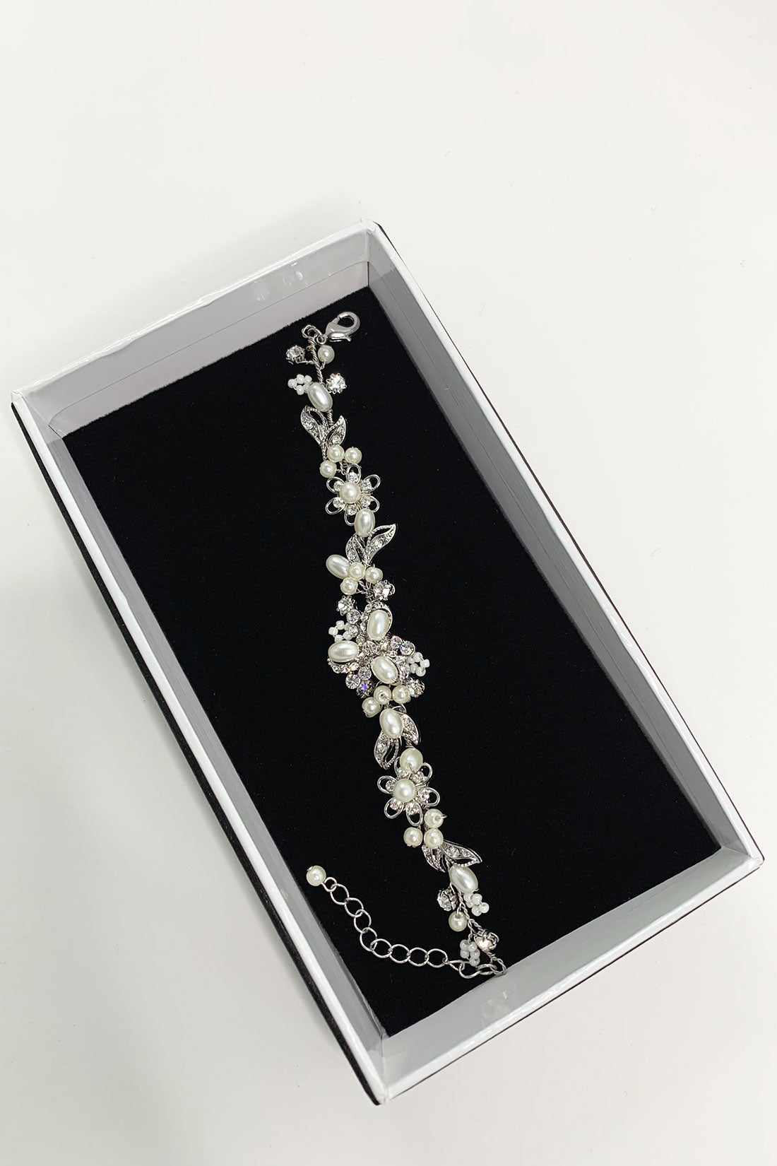 Marie-Sue is a stunning antique style bracelet. An elegant and refine classic style, Marie-Sue features both freshwater pearls, crystals with a rhodium finish. The Marie-Sue bracelet matches the Marie Sue Earring, as well as the Sue Earring and Necklace set. The Marie-Sue bracelet is approximately 15cm long, and is complete with a 4.5cm extension to comfortably fit all wrist sizes.
