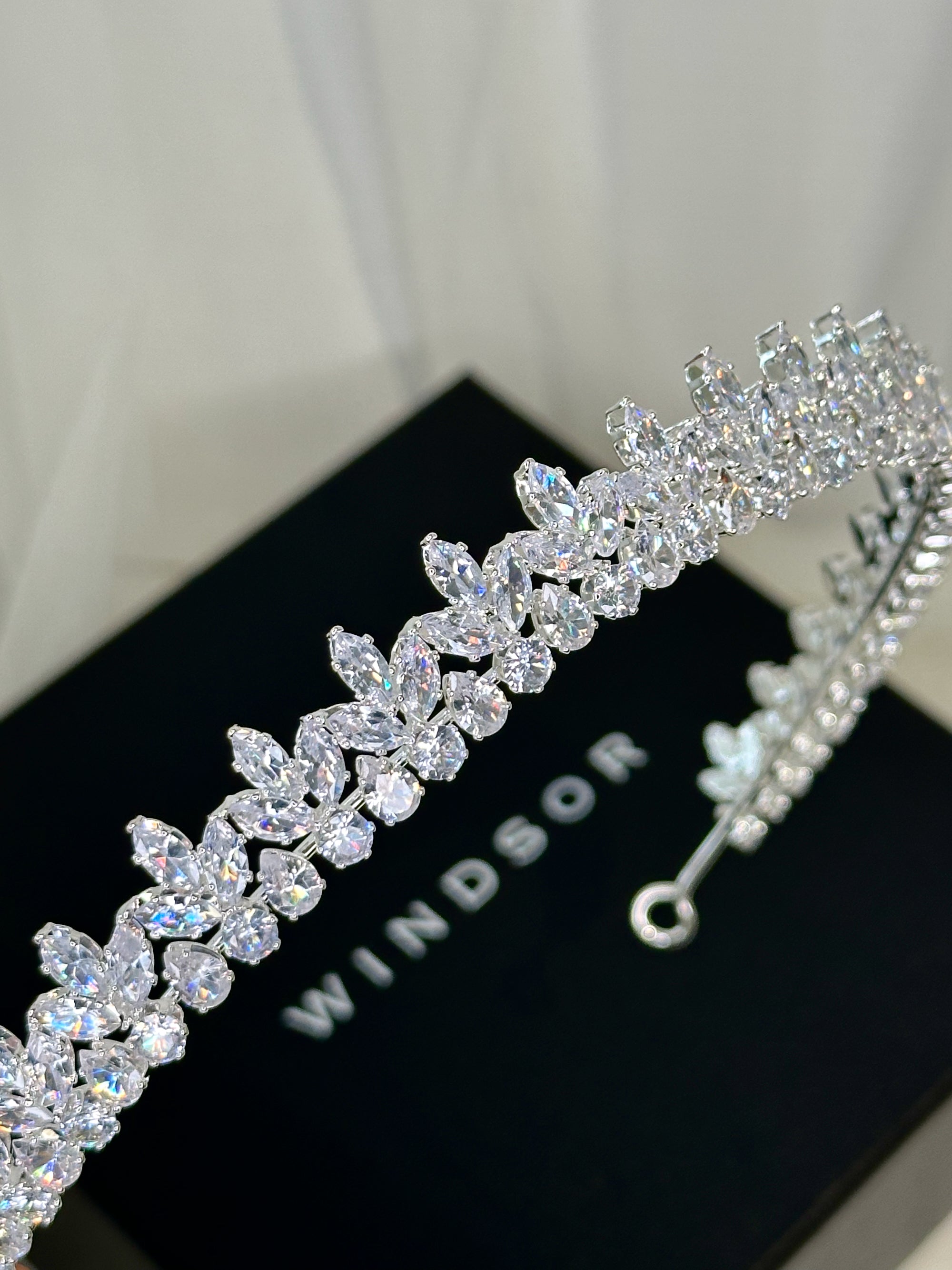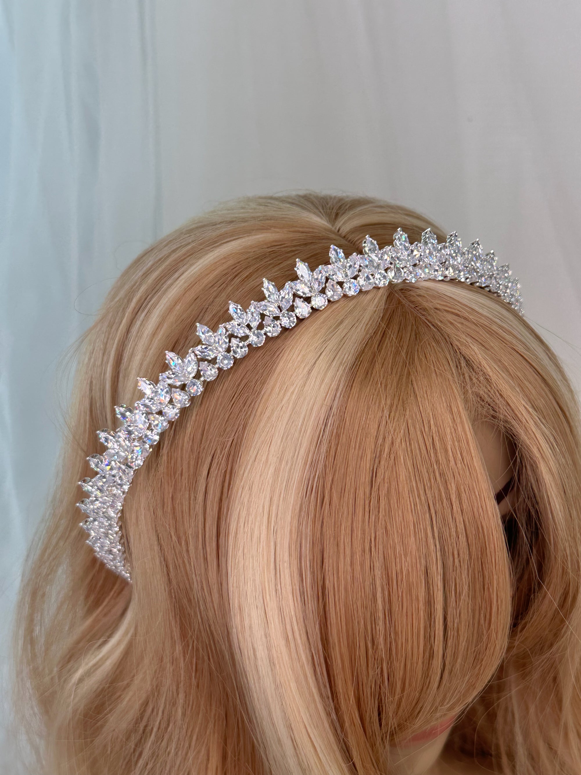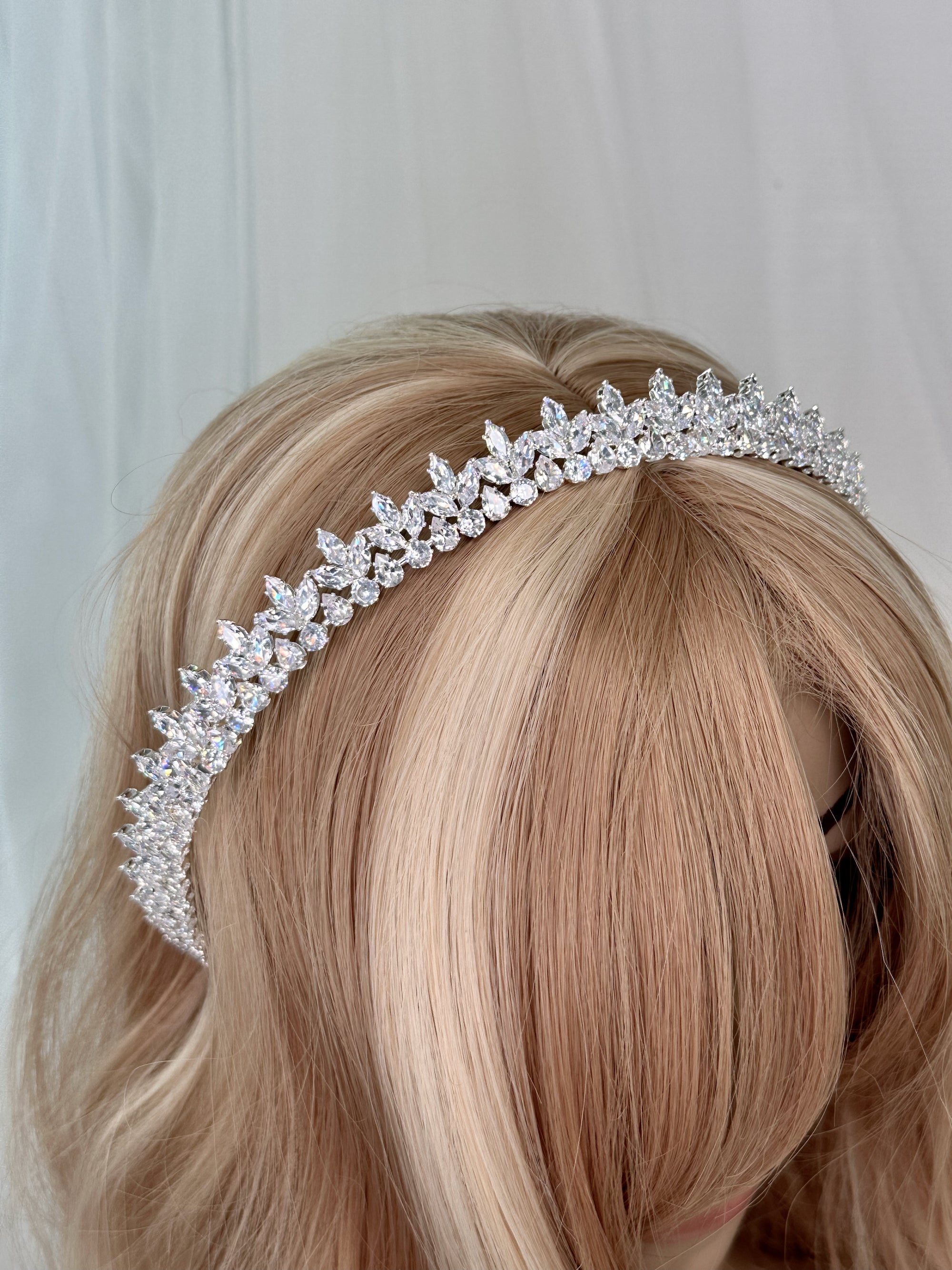 Uma is a sophisticated wide tiara designed for the modern bride seeking an elegant, understated look. Crafted with quality closed-backed crystals in a bright silver plated setting, this piece features a low, headband-style design that sits gracefully across the head at just 1.6cm high. Exceptionally light and flexible with premium components throughout, Uma offers comfort for your entire wedding day. The tiara encircles the head completely and arrives beautifully presented in luxury packaging, ready to complement your bridal ensemble.