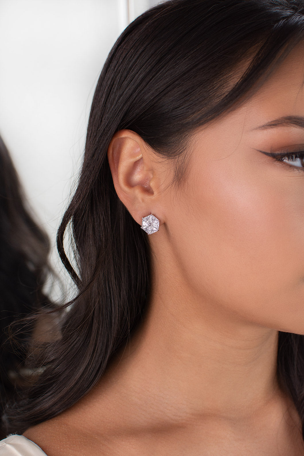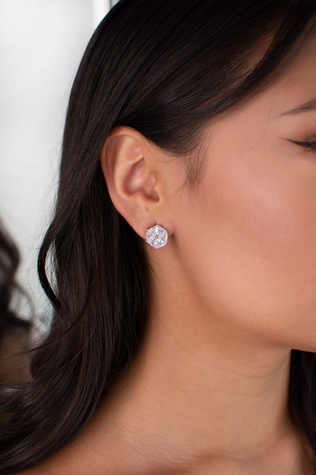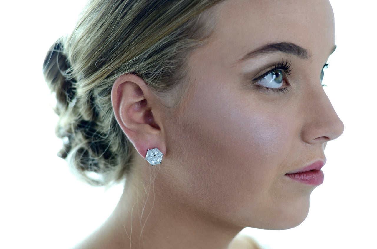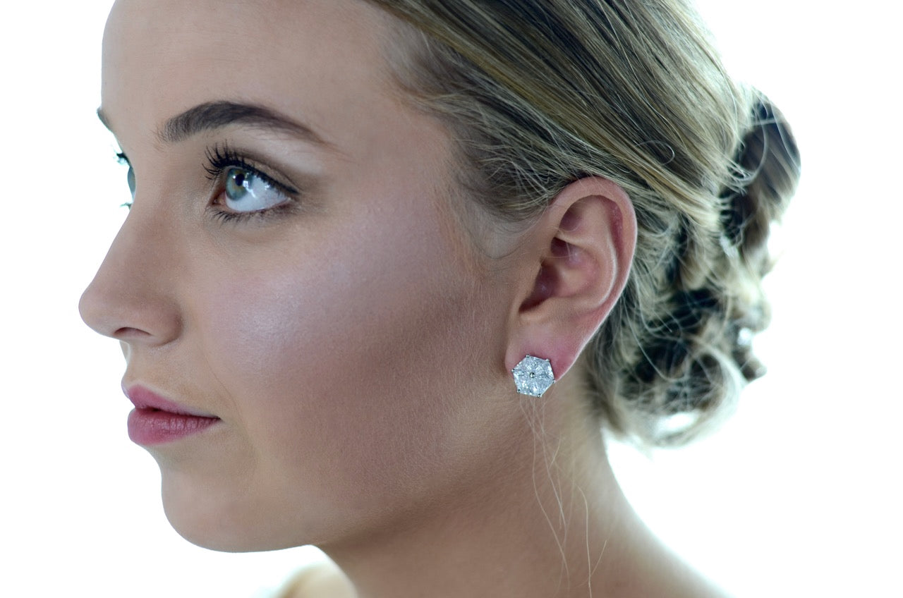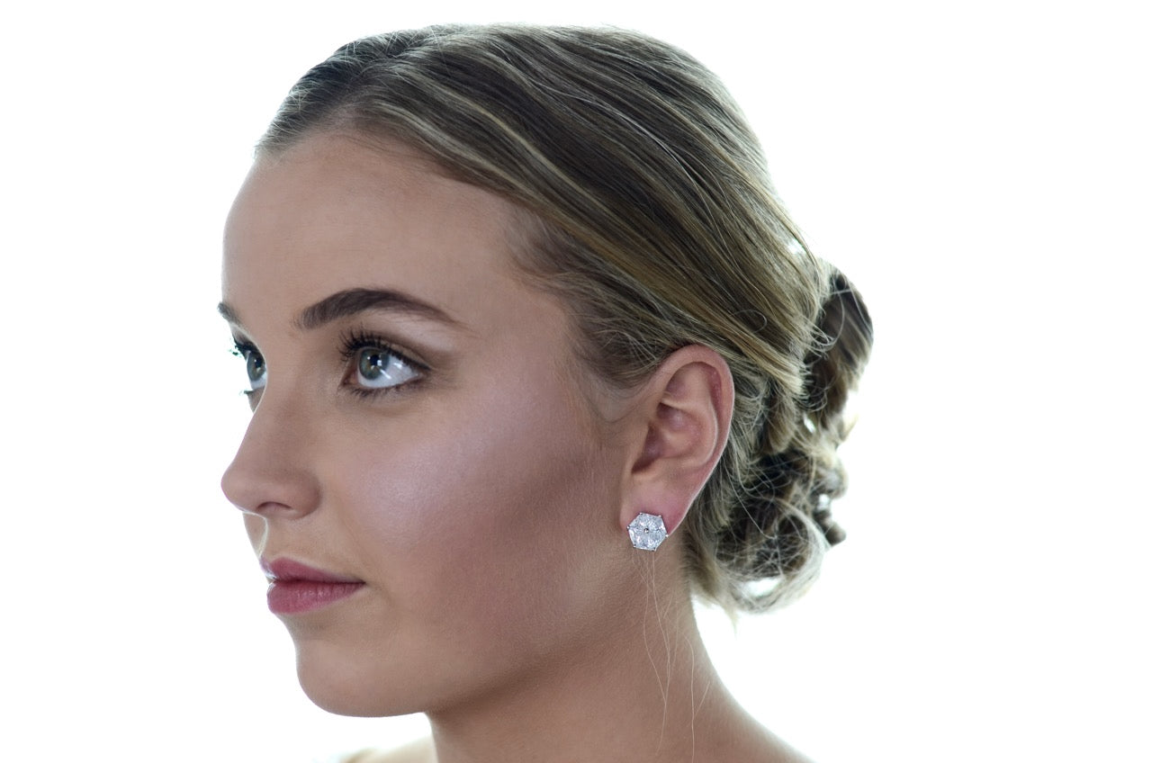 In the Art Deco style Kate is an unusual earring in a hexagon shape that is elegant and distinctive. Six perfect triangle crystals are perfectly set together to make this beauty. So if you are a Bride looking for a stud earring but with a special edge then Kate might be the one to complete your bridal ensemble. Made of quality Zirconia stones with a rhodium (darker silver) finish Kate is a piece to remember.