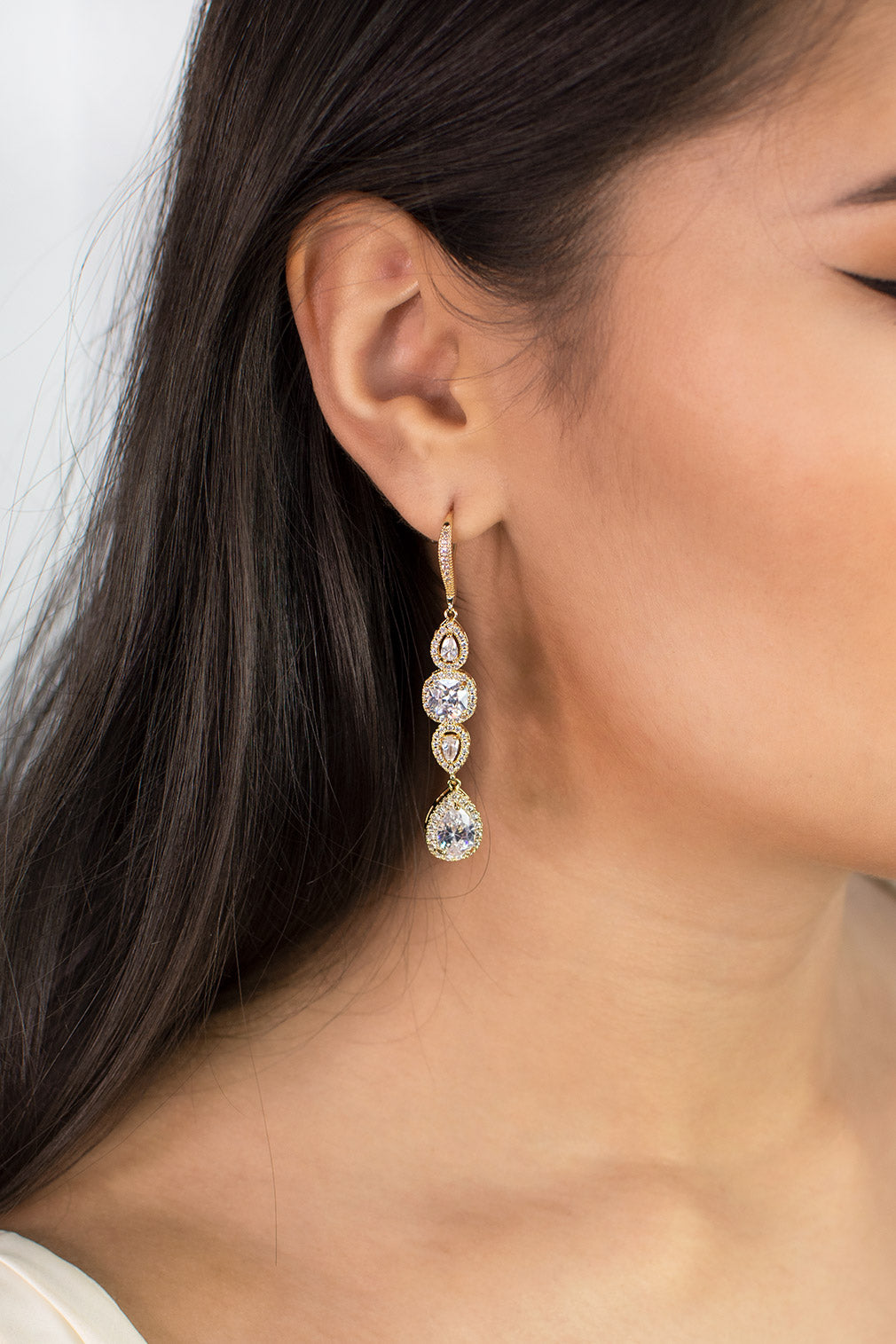 A sparkling wonder of an earring, Montana is a luxe long drop statement piece that is sure to capture the attention of all. Hanging beneath a crystallised classic hook fitting, Montana features three stacked intricately encrusted crystals with a final hanging teardrop crystal that will light up with movement as you stride down the aisle, parade through the day and twirl into the night. If you are looking for a touch of Hollywood glamour on your special day, Montana is the earring for you. This earring has an elegant hook fitting.