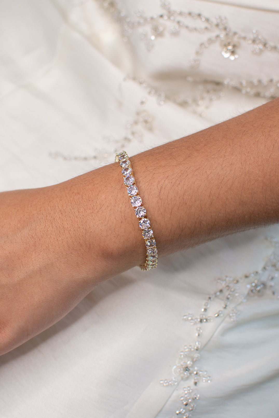 Polo is a beautiful, classic round zirconia stone bracelet with a gleaming, high quality gold finish. A classic and trendy bracelet, Polo will compliment all styles and looks, perfect for both weddings and formals alike.