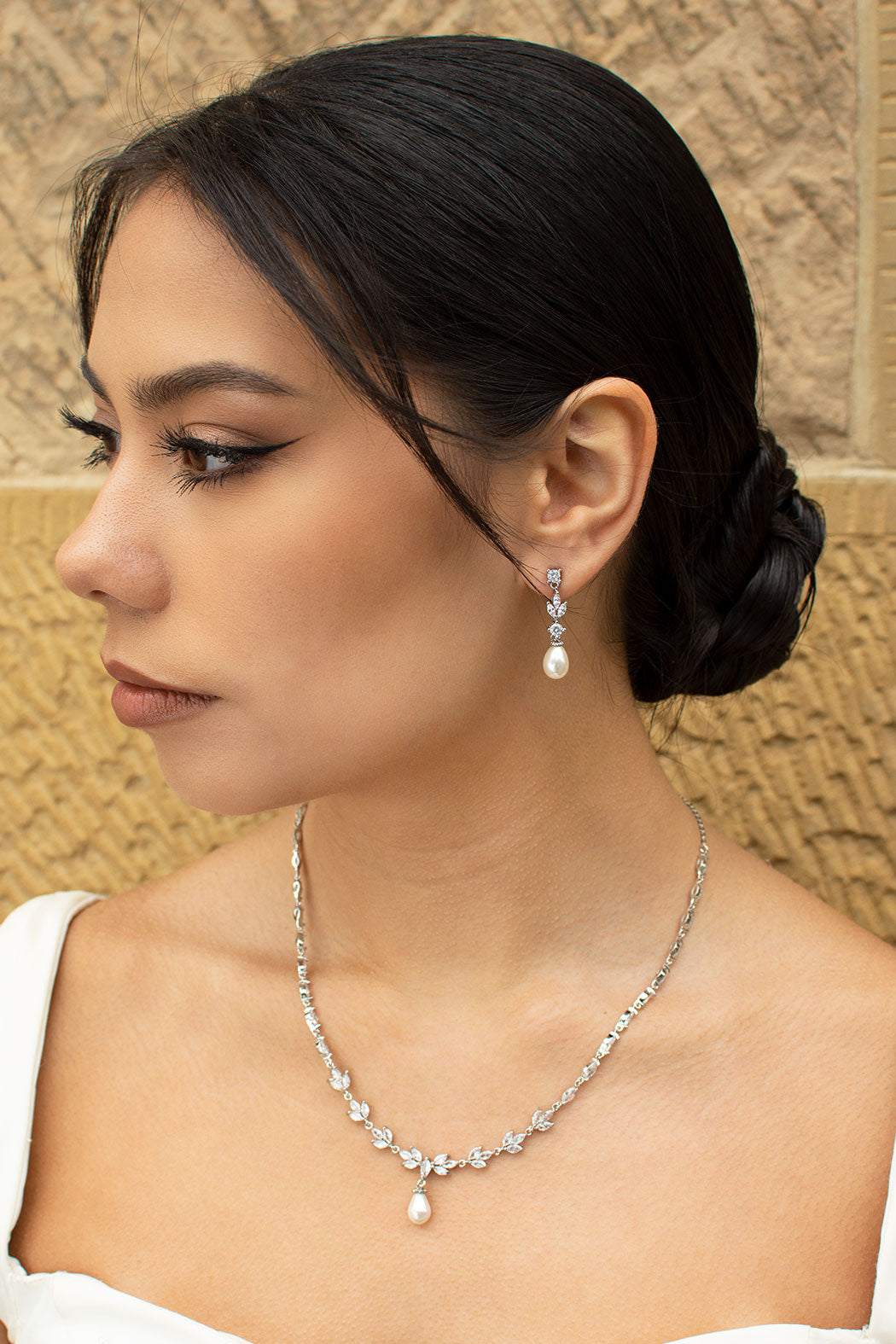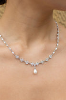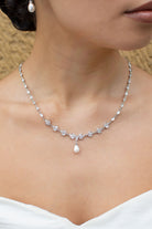 A necklace to treasure long past the day of your wedding, Leah features a delicate drape of crystals centred with an exquisite drop pearl. Dazzle on the night on your wedding adorned with a shimmering crystal necklace.