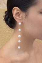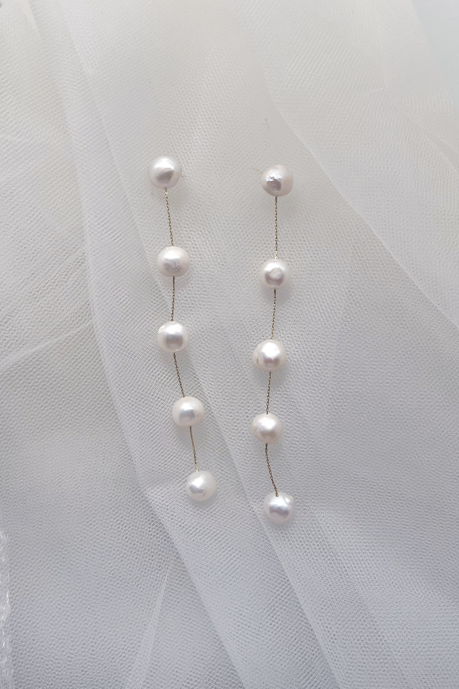 Bellisima! Our incredible modern freshwater pearl earring, a perfect statement earring with a minimal touch. Bellisima is a beautiful freshwater pearl earring featuring five suspended pearls floating between gold plated sterling silver chains. If you're looking to make a modern statement on your special day, Bellisma is the one for you. Elegant and simple, fall in love with Bellisma.