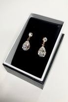 A bridal classic, Rosemary features a genuine Swarovski pear shape crystal set by hand in our studio. These two make a pretty pair for the bride who wants to sparkle just a little on her big day.