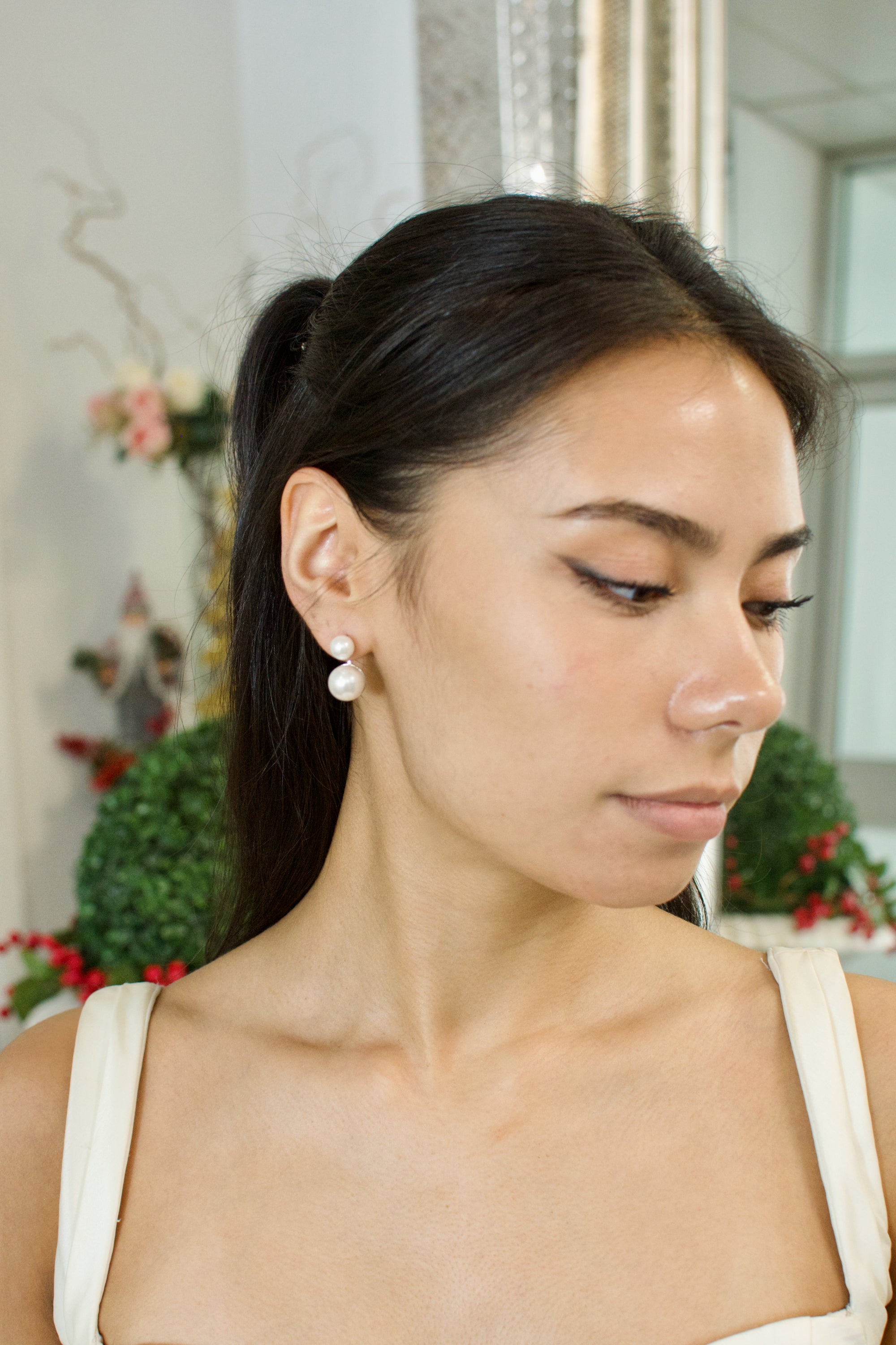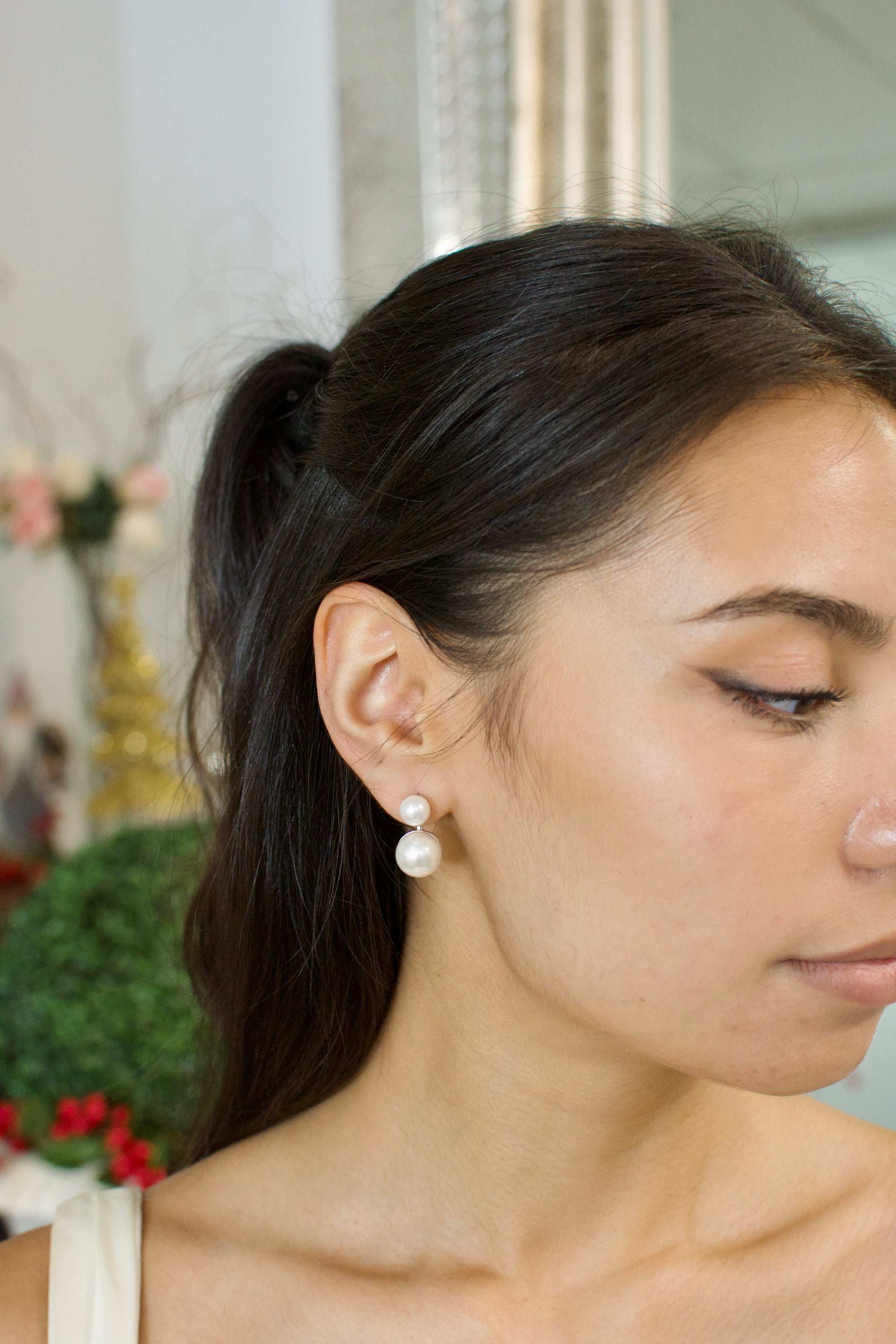 The Ana Pearl Earring combines elegance with modern sensibility, featuring lustrous glass-based pearls that capture light beautifully. Crafted with hypoallergenic titanium posts, these earrings offer exceptional comfort for sensitive skin, making them an ideal choice for brides seeking both luxury and wearability. Perfect for those who appreciate the classic allure of pearls without compromise.