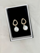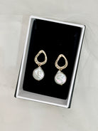 Freshwater Pearl (faux) Earrings in a display box.