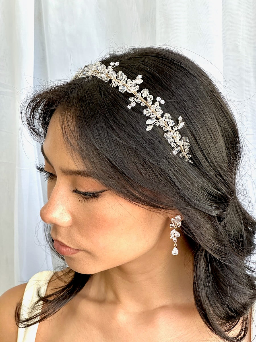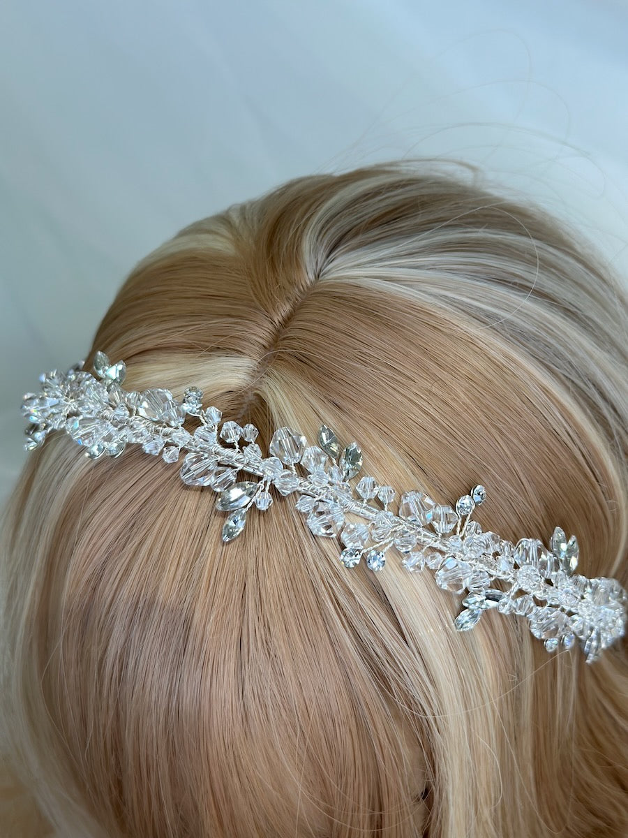 If you are a Bride just needing something simple and beautiful then look no further. The Ariel headband is easy and comfortable to wear and is sure to perfectly compliment your bridal ensemble. Quality clear crystals weave around a flexible and easy to adjust headband frame that has no pressure yet fits perfectly snug on your hair. Feel confident and look stunning when you walk in front of your family and friends as a Bride to be remembered.