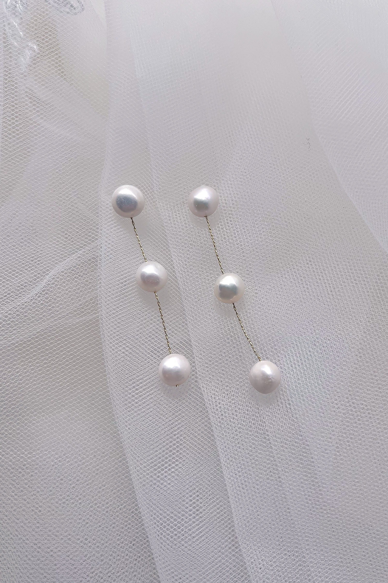 Capture hearts with our beautiful Bella Earring. Featuring three floating freshwater pearls suspended by a divine gold chain providing the upmost elegance for the Bride or Bridesmaids. Bella's minimalist design is perfect for modern silhouettes and fabrics, an earring to cherish forever.