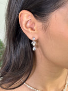 The Bettie Earring features a delicate short drop design adorned with lustrous pearls and sparkling zirconia crystals. The open back settings of the crystals enhance their brilliance by allowing light to pass through, creating a refined and radiant effect. Perfect for adding an elegant touch to any ensemble.