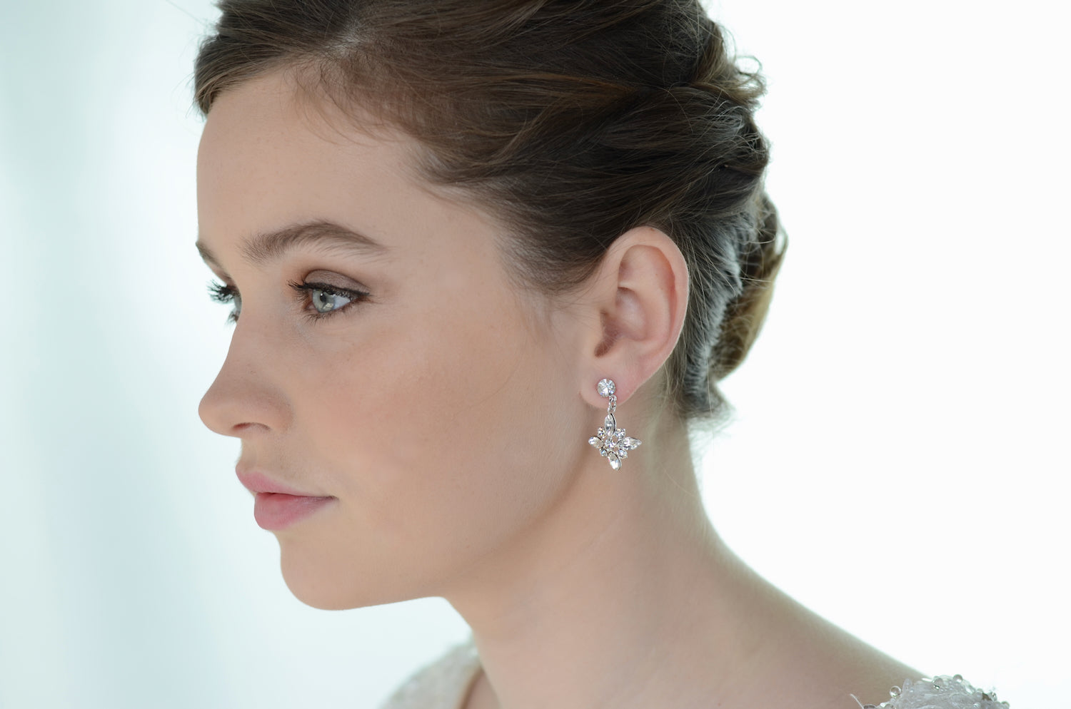 Made by hand in Australia this cross shape earring uses German parts with genuine Swarovski stones. Briar is a classic and charming quality Silver earring with four navette shaped stones and tiny round crystals the Briar Bridal Earring is a graceful asset to a Bride or Bridesmaids