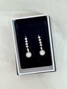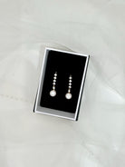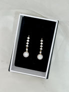 Raise your bridal ensemble with the Daisy Earrings, featuring genuine freshwater pearls delicately paired with long crystal drops. Gold-plated for a refined finish, these earrings offer timeless elegance and subtle sparkle. Presented in a stylish display box, they make a perfect gift or a cherished keepsake for your special day.