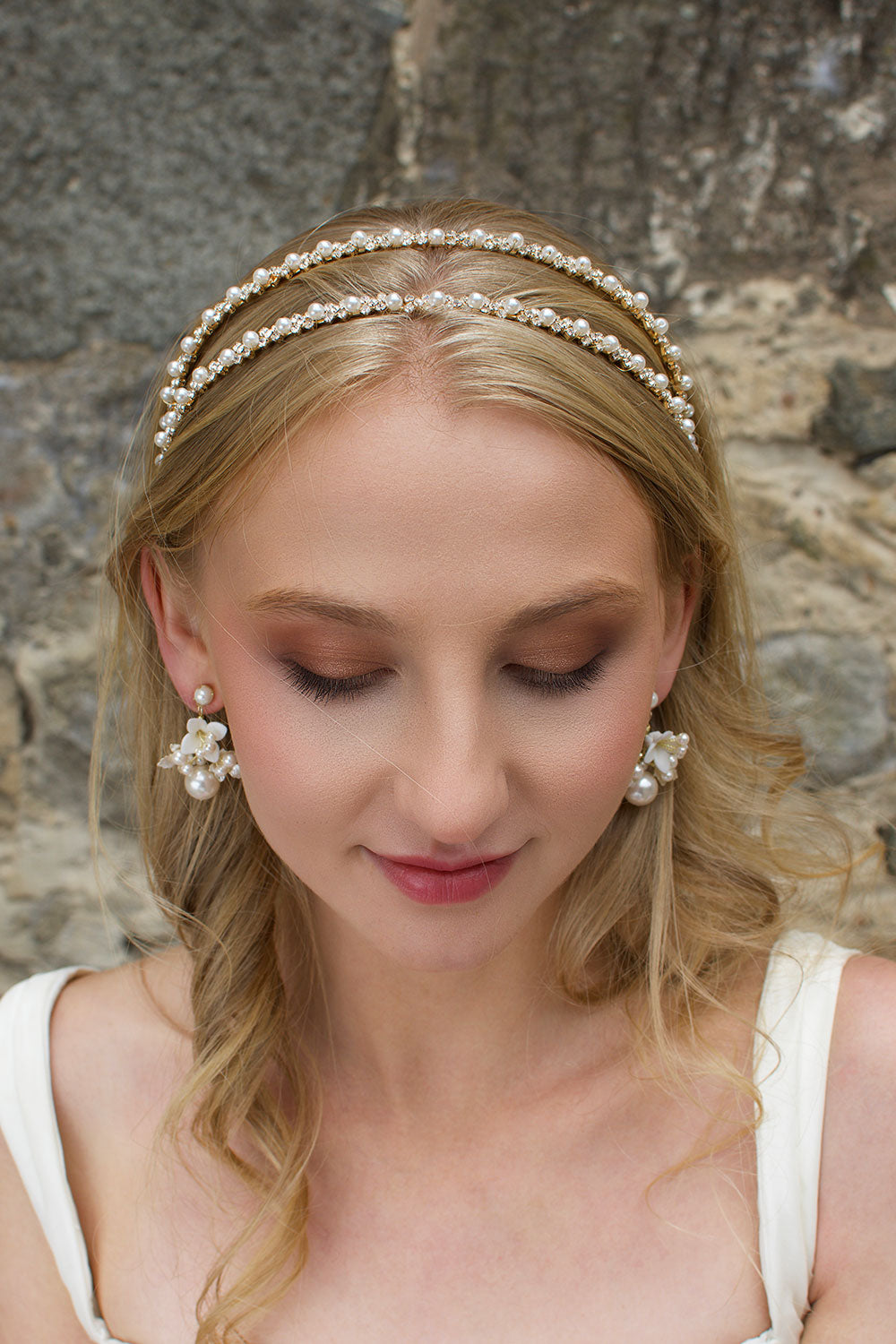 Genevieve is a classic, beautiful two-row bridal headband. The twin rows of clear crystals and pearls are bound onto the light and bendable frame, allowing this piece to mould to the shape of your head for a comfortable fit. Genevieve is modern yet glamorous and will brighten any bridal look with its' simple and pure elegance.