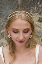 You'll be golden on your big day with Genevieve as your graceful crowning glory. This beautiful headband featuring two rows of crystals and pearls and allows easy adjustment for individual fit and comfort. If pared-back modern sophistication is the look you are going for, this is the headband you'll be dreaming of wearing on your special day.