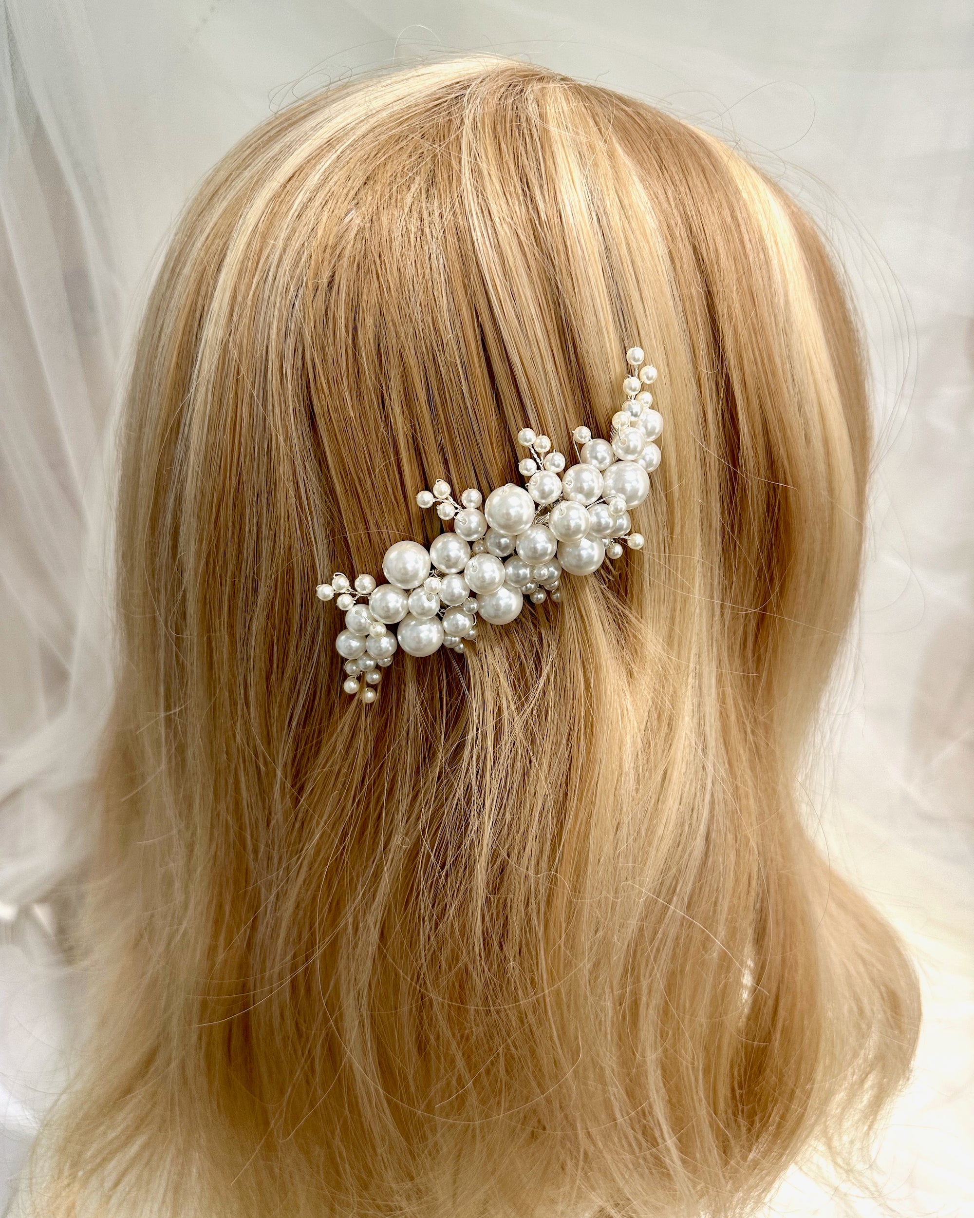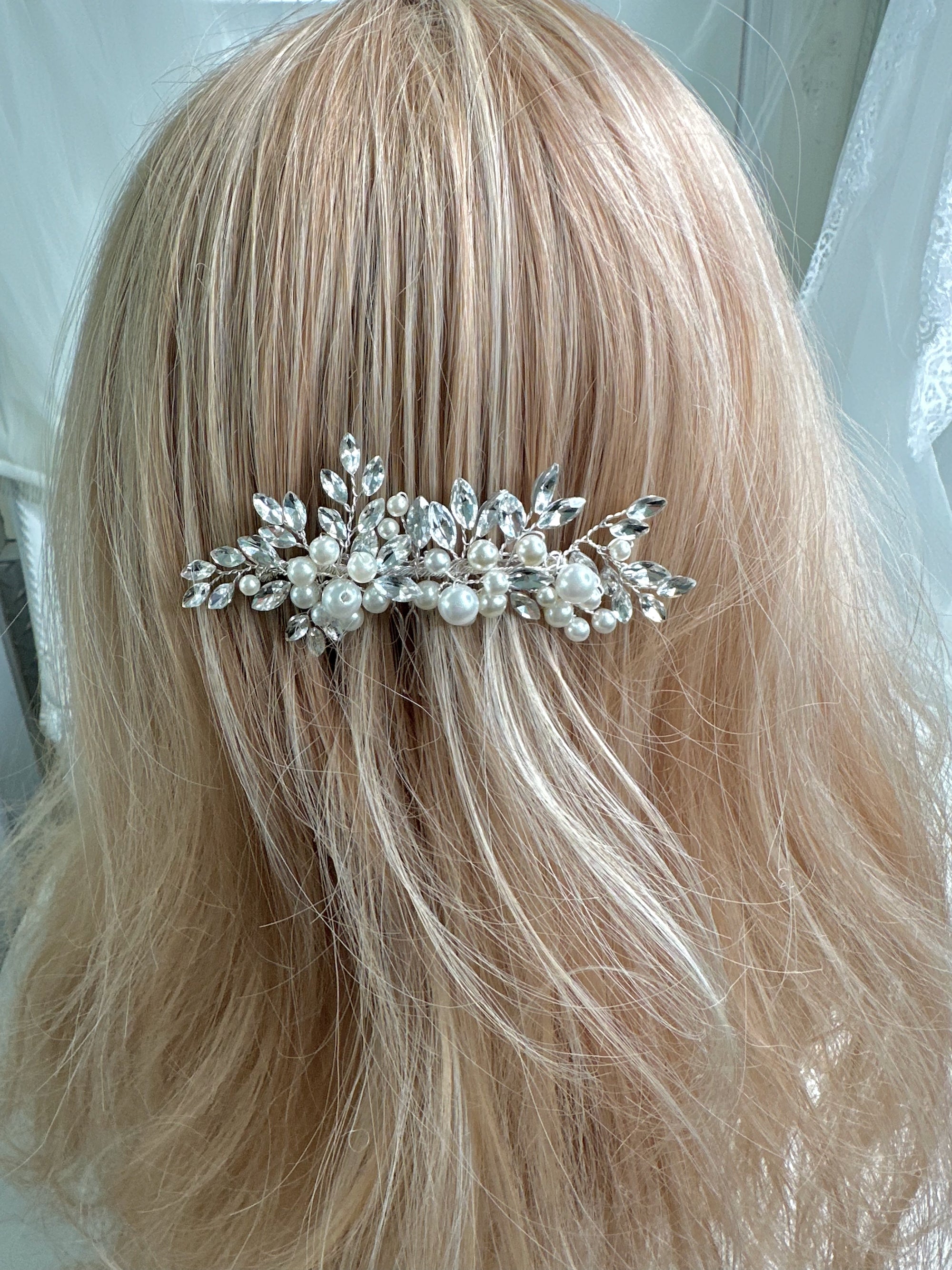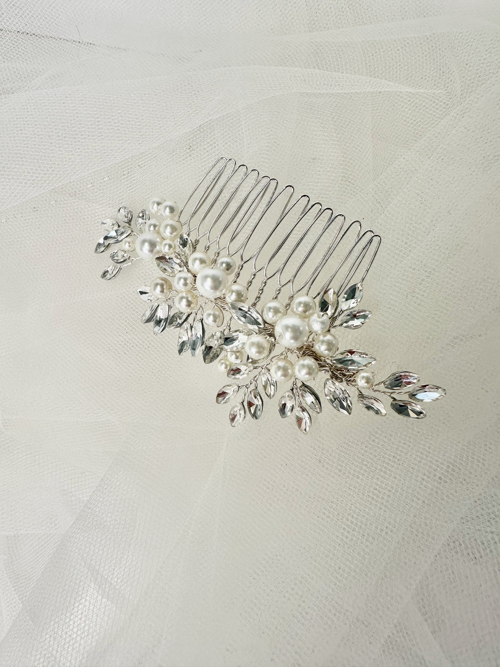Designed with a flexible, contoured shape that adapts to your head for a secure, comfortable fit, the Isa Comb works beautifully with veils and other bridal accessories. Whether you're wearing a traditional veil or a modern alternative, this comb holds everything in place while letting your natural beauty shine through.