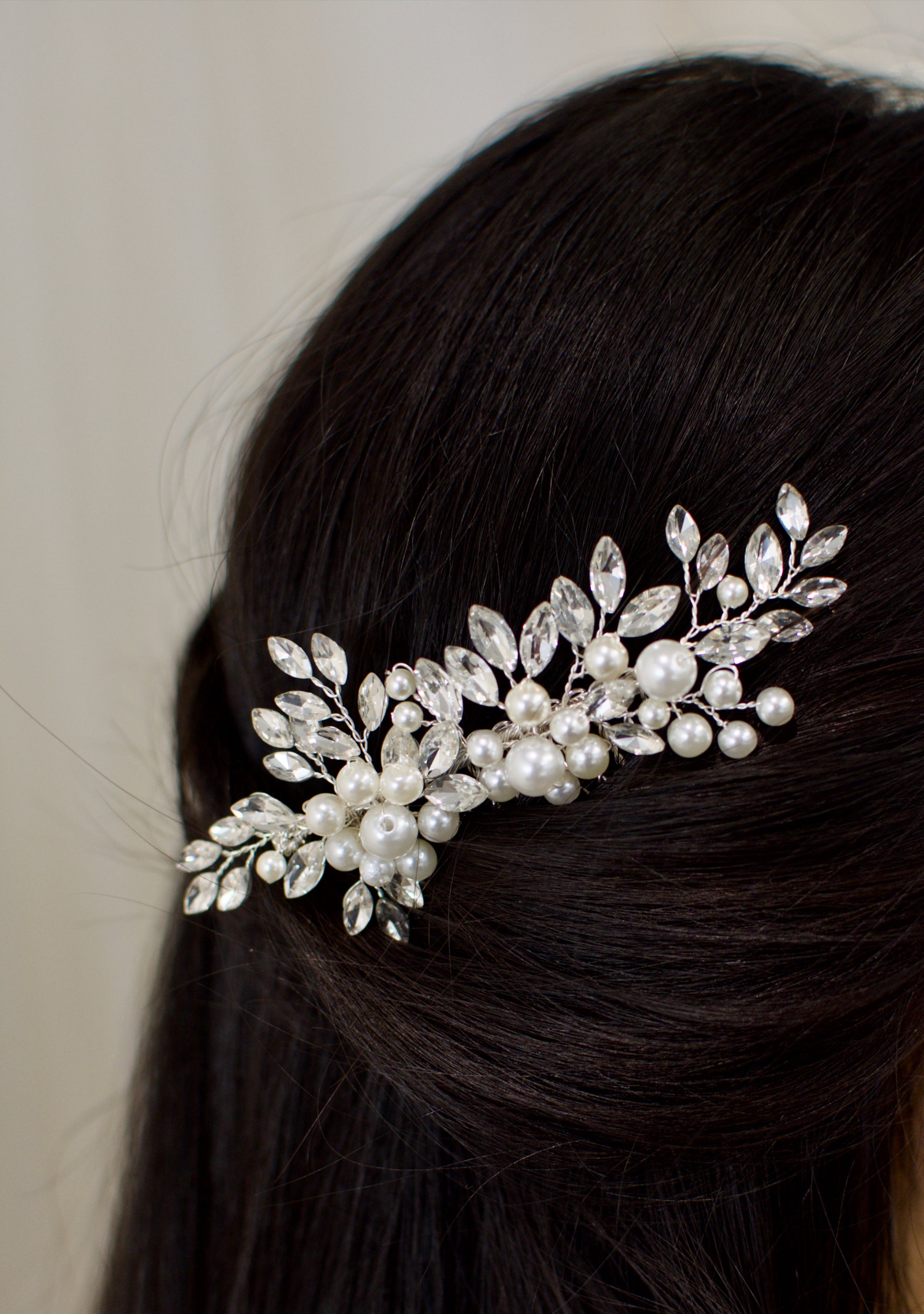 The Isa Comb is the perfect finishing touch for your wedding day. Adorned with sparkling crystals and lustrous pearls, this elegant hair comb adds timeless sophistication to your bridal look.