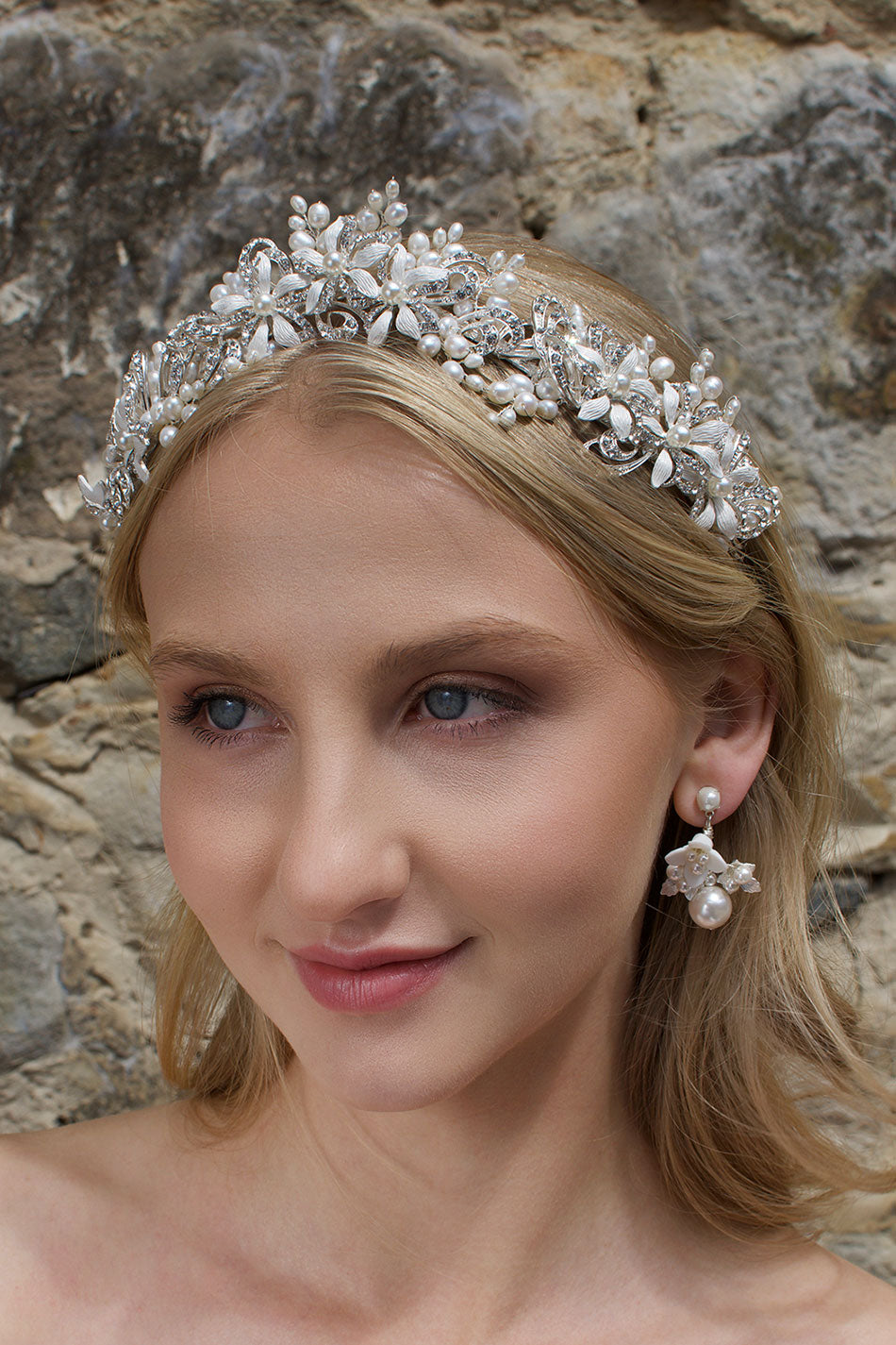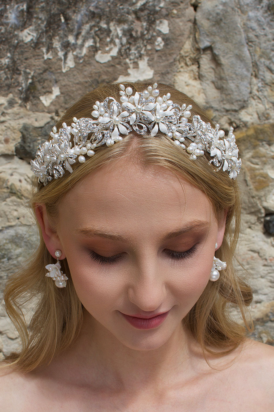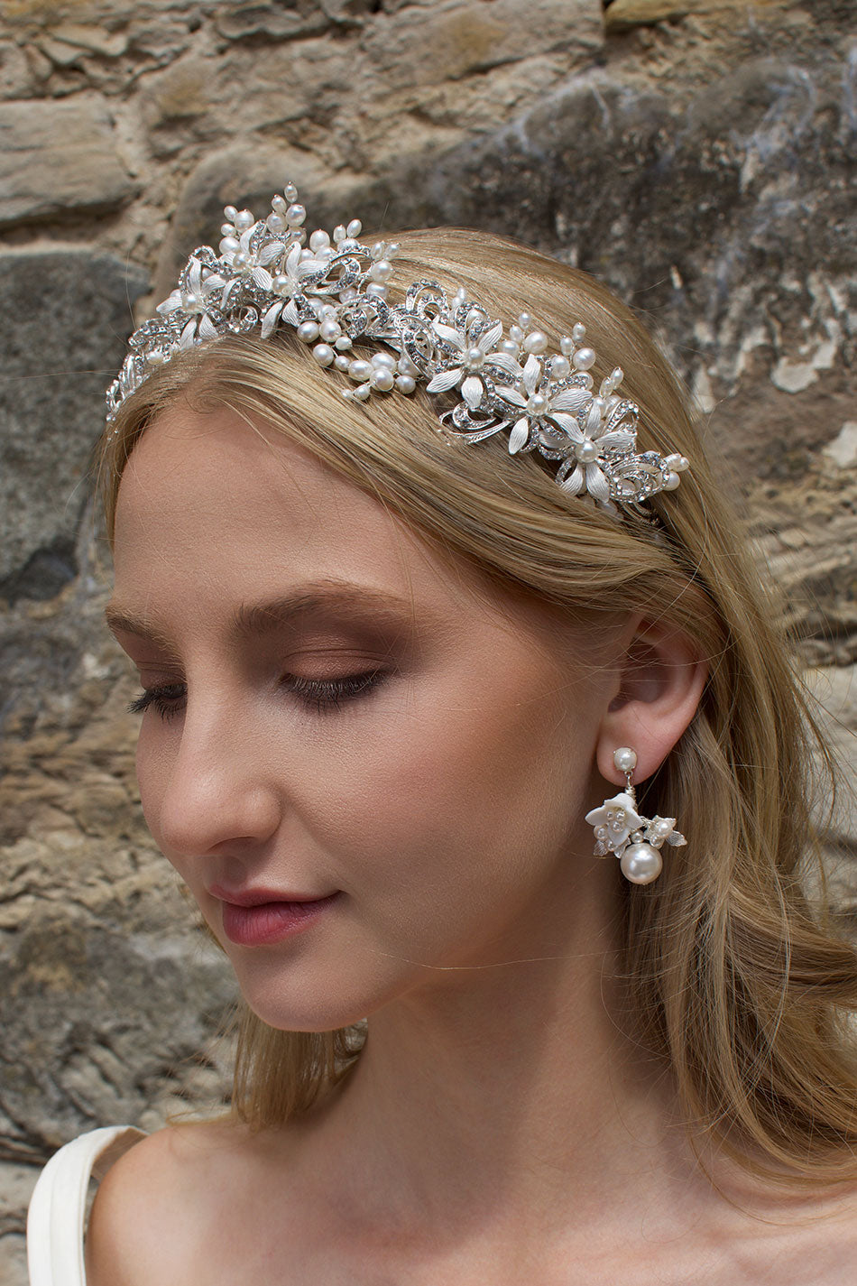 The Jasmine Crown matches our Jasmine Silver Side Comb a perfect set for brides and bridesmaids.