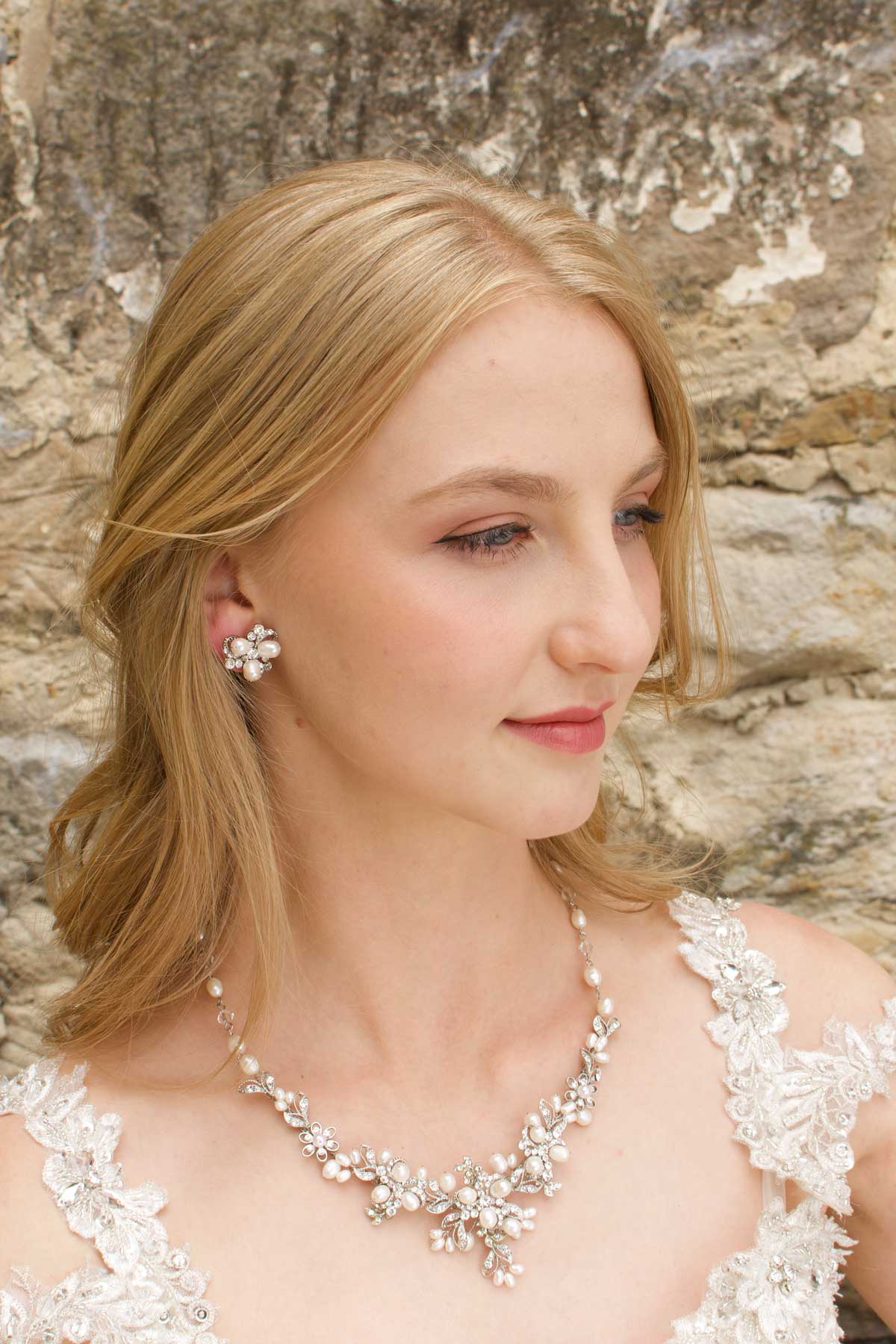 Walking down the aisle the Marie-Sue pearl stud earring will make you the most elegant and sophisticated Bride. With a unique 3 pearl feature this swirling design will catch many admiring glances. Each loop of this lovely silver creation has such tiny crystals embedded over the surface giving that subtle radiant gleam as the light catches it. Perfect to match exactly with the Sue Necklace or the Caroline headband or Caterina side comb the Marie-Sue earring is a much loved piece by so many Brides.