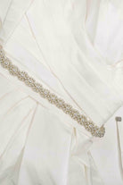 Our Victoria All Pearl Belt is a narrow style belt with a gleaming centre pearl surrounded by a ring of pearls that make this belt approximately 1.5cm wide. The pearl motif extends for 60cm approximately and is backed by a 3 metre long ribbon, tipped with diamanté stones that finish off the ribbon beautifully. The Victoria All Pearl Belt is available in Ivory satin ribbon. We can also do white satin ribbon at no extra cost. Please add a note when ordering if you would like the white.