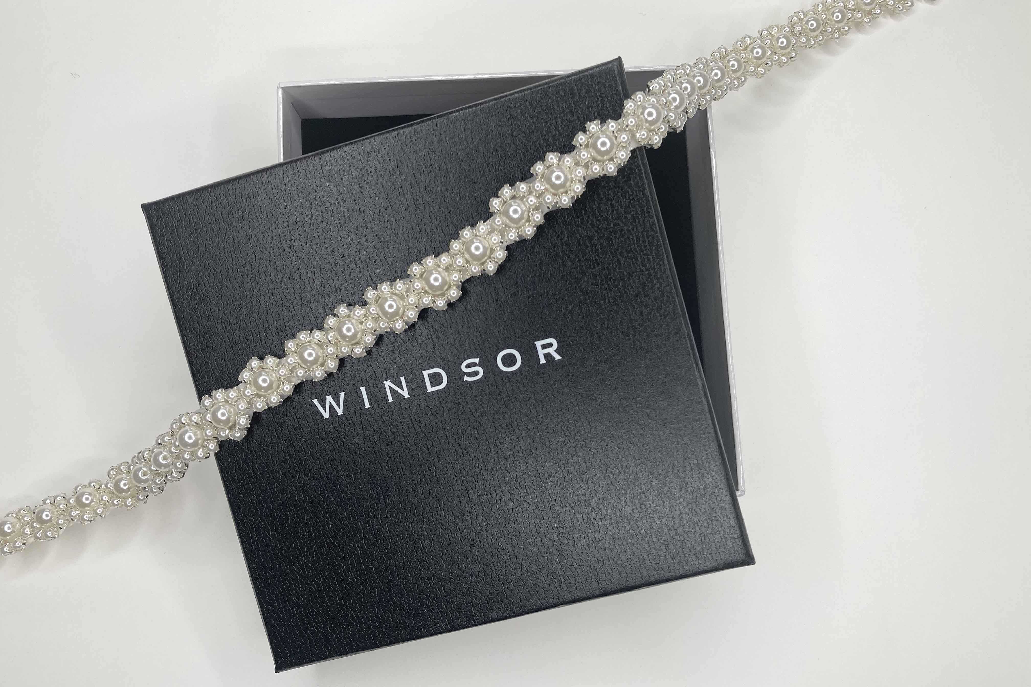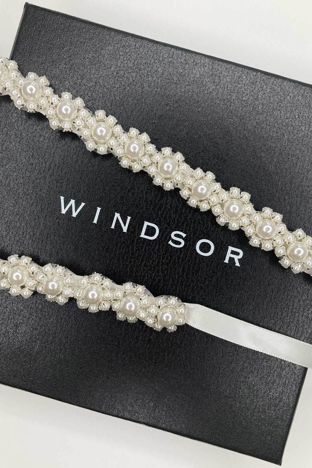 The Victoria Belt is also available in a Pure Crystal version, the Victoria Crystal Belt, and in a Crystal and pearl version, the Victoria Pearl Belt.