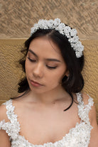 Winona is a brilliant bow of crystal mastery that glistens and throws rainbows in the sunlight. With silver crystal swathes adorning the hairline, you won’t find a design that delivers more subtle elegant gleam than this. Winona is the one to walk you down the aisle in fairytale style on your special day.